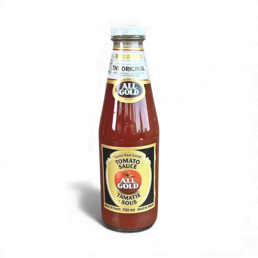 All Gold Tomato Sauce 700ml is an authentic South African ketchup renowned for its great flavor. Packaged in a generous 700ml bottle, this delicious sauce contains no artificial preservatives and is gluten-free, making it an ideal accompaniment for all your favorite meals. Indulge in the taste of South Africa today with All Gold Tomato Sauce!
