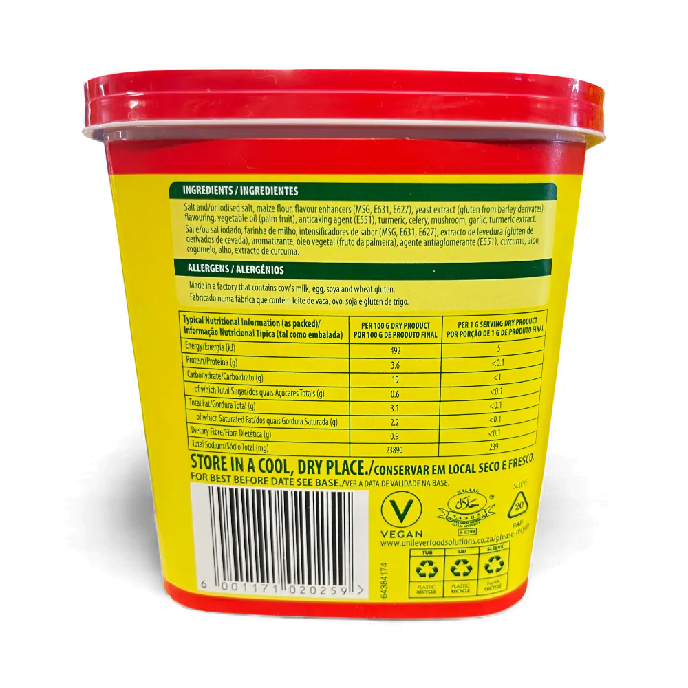 Knorr Aromat is a meticulously crafted blend, offering a versatile, all-purpose seasoning that’s indispensable for professional chefs. Whether you're aiming to enhance roasted vegetables, salt & pepper squid, chips, or chicken, Knorr Aromat brings a savory flavor boost that elevates your dishes to new heights. Inspired by a finely balanced Swiss recipe, it combines herbs, spices, and aromatics to perfection.
