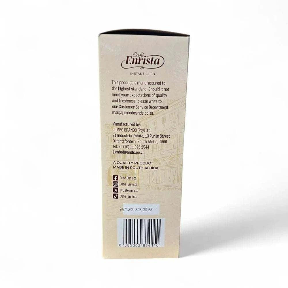 Experience instant bliss in every cup with Café Enrista's 3-in-1 Mild Coffee – a smooth, creamy blend of 100% pure coffee, sugar, and creamer. Crafted in South Africa for true coffee lovers who prefer a gentler brew, each sachet delivers a mellow, satisfying flavour with zero fuss. Just add hot water, stir, and enjoy café-quality comfort from home.