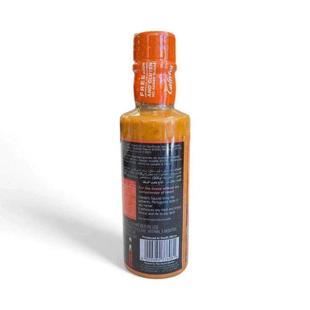 For the true spice lovers, Calisto's Peri Peri Sauce – Hot delivers a fiery heat that will elevate any meal with its bold and intense flavors. This 250ml bottle is packed with authentic Portuguese heat and spice.