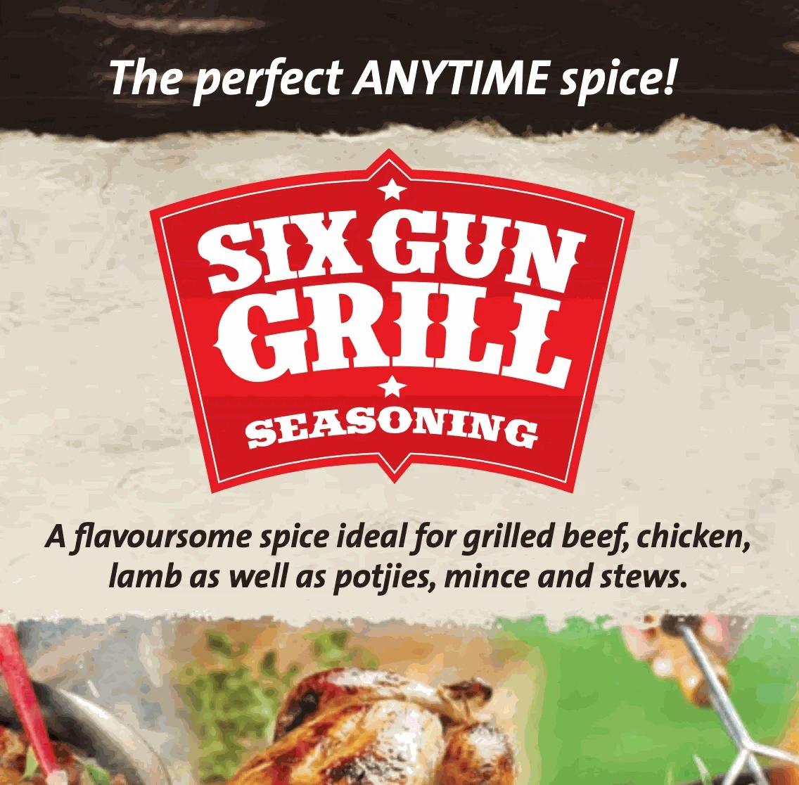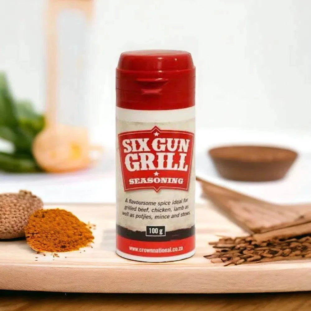 Elevate your culinary creations with Crown National's Six Gun Grill Spice Shaker 100g and experience a burst of flavor in every bite.