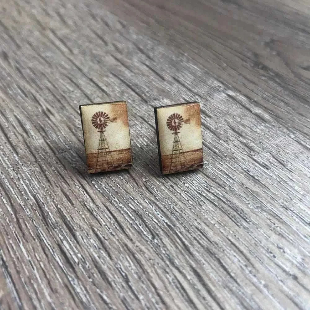 Earrings - Windmill with Brown & Beige