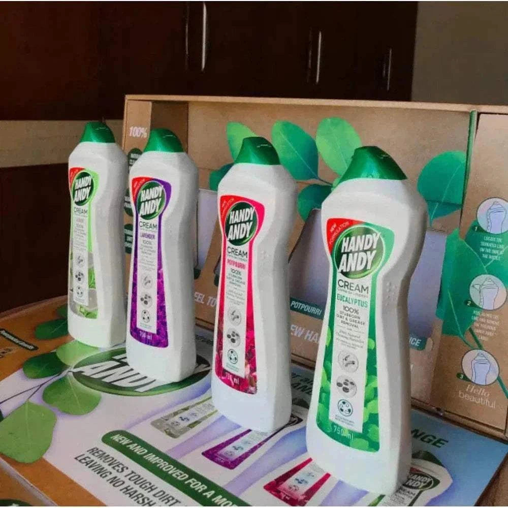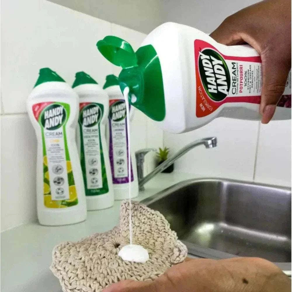 Handy Andy Cream Lavender is the ultimate solution for 100% tough dirt and grease removal. This versatile cleaner is safe for use in food preparation areas, ensuring a clean and hygienic environment. The soothing lavender fragrance is 100% biodegradable, contributing to a more eco-friendly home. The bottle is crafted from recycled plastic, showcasing our commitment to sustainability.