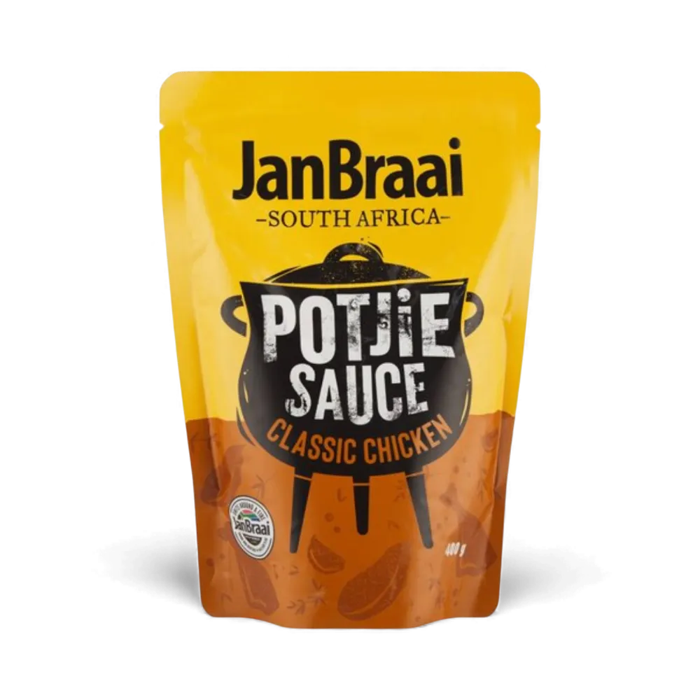 Make a delicious, perfectly seasoned chicken potjie every time with Jan Braai’s Classic Chicken Potjie Sauce. It’s mild, savoury and packed with comforting flavours that pair beautifully with chicken. This sauce brings richness, depth and that unmistakable South African potjie taste — without needing to measure or mix anything.