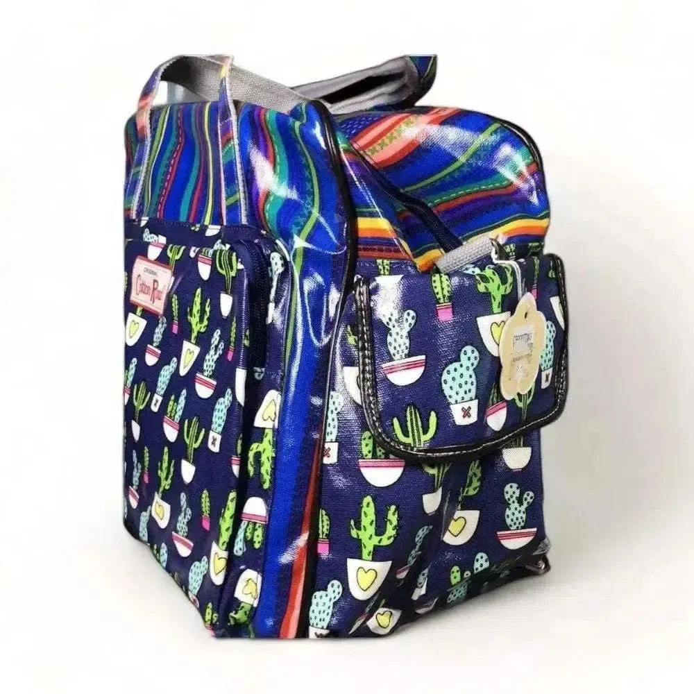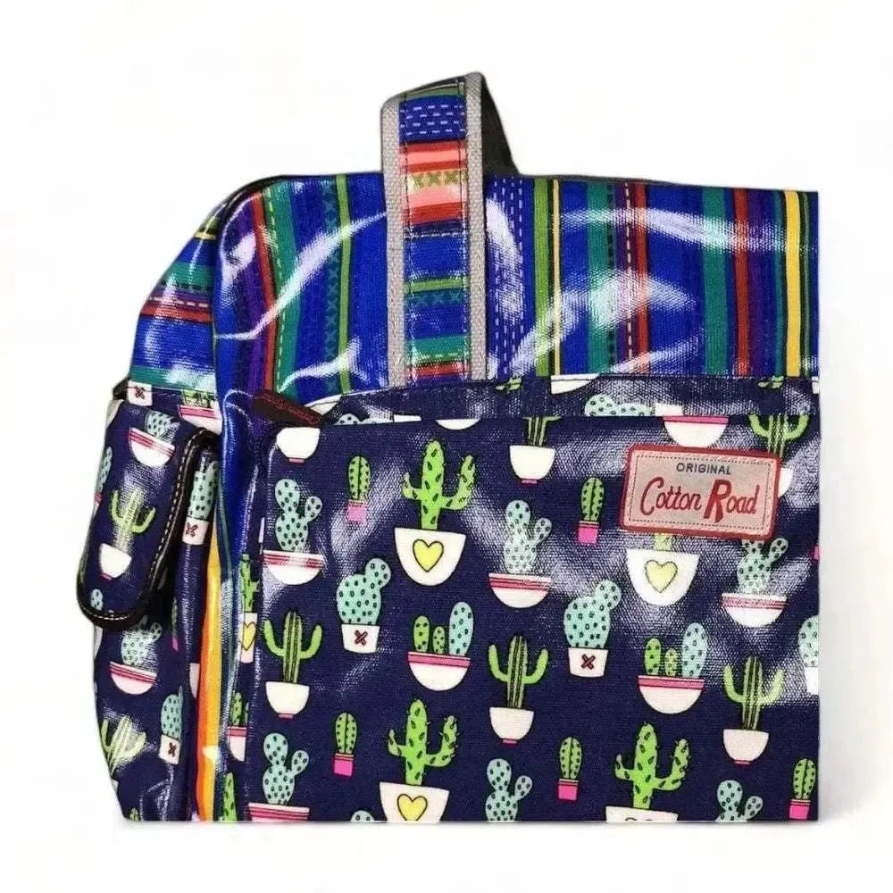 Cotton Road Nappy Bag - Navy Blue with Cactus & Stripes