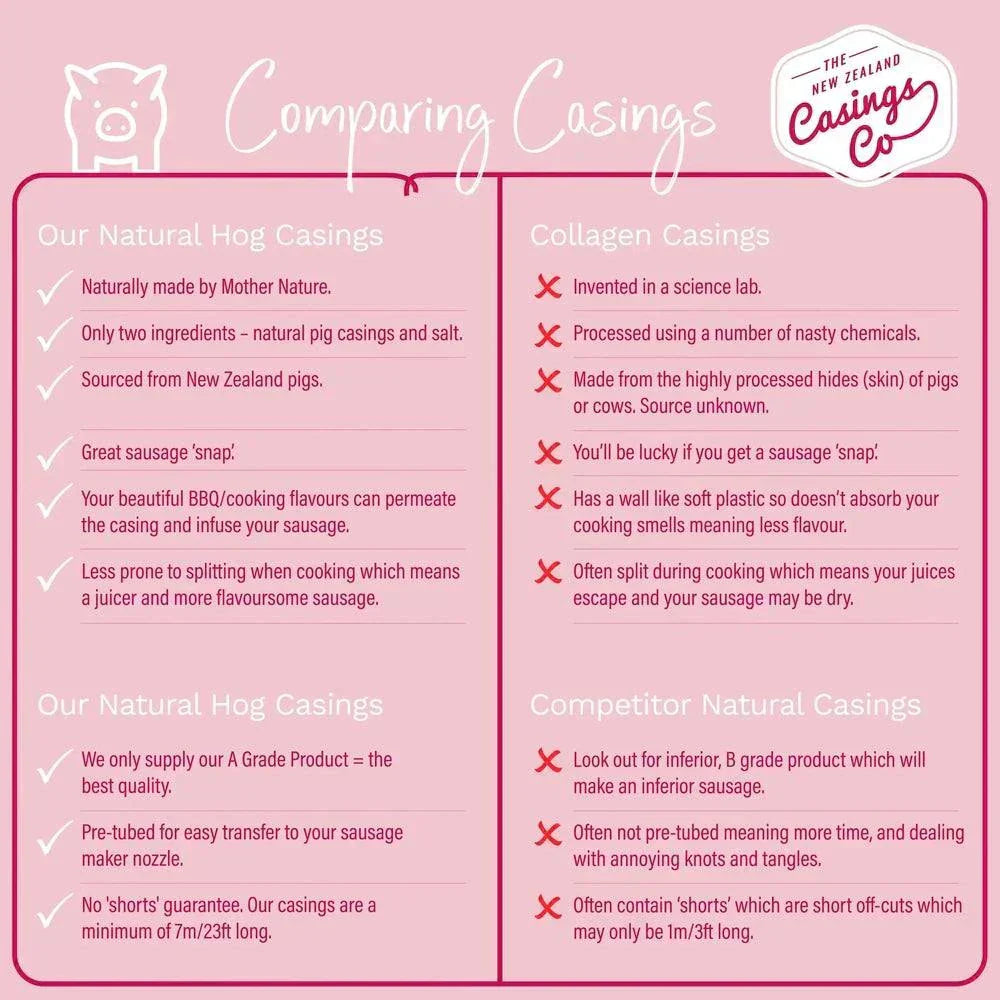 Casings are the hidden superhero of your sausage. Your sausage casing is what keeps all your carefully chosen ingredients, flavours and juices in and it also dictates the texture and eating experience of your final sausage.