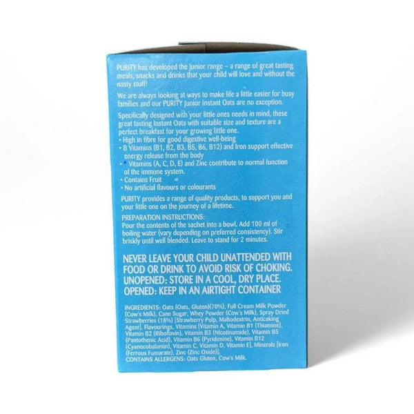 Kickstart your child's day with Purity Junior Instant Oats in the delicious strawberry & vanilla flavour. Designed for children from 7 months and up, this healthy breakfast option provides essential nutrients for growing little ones.