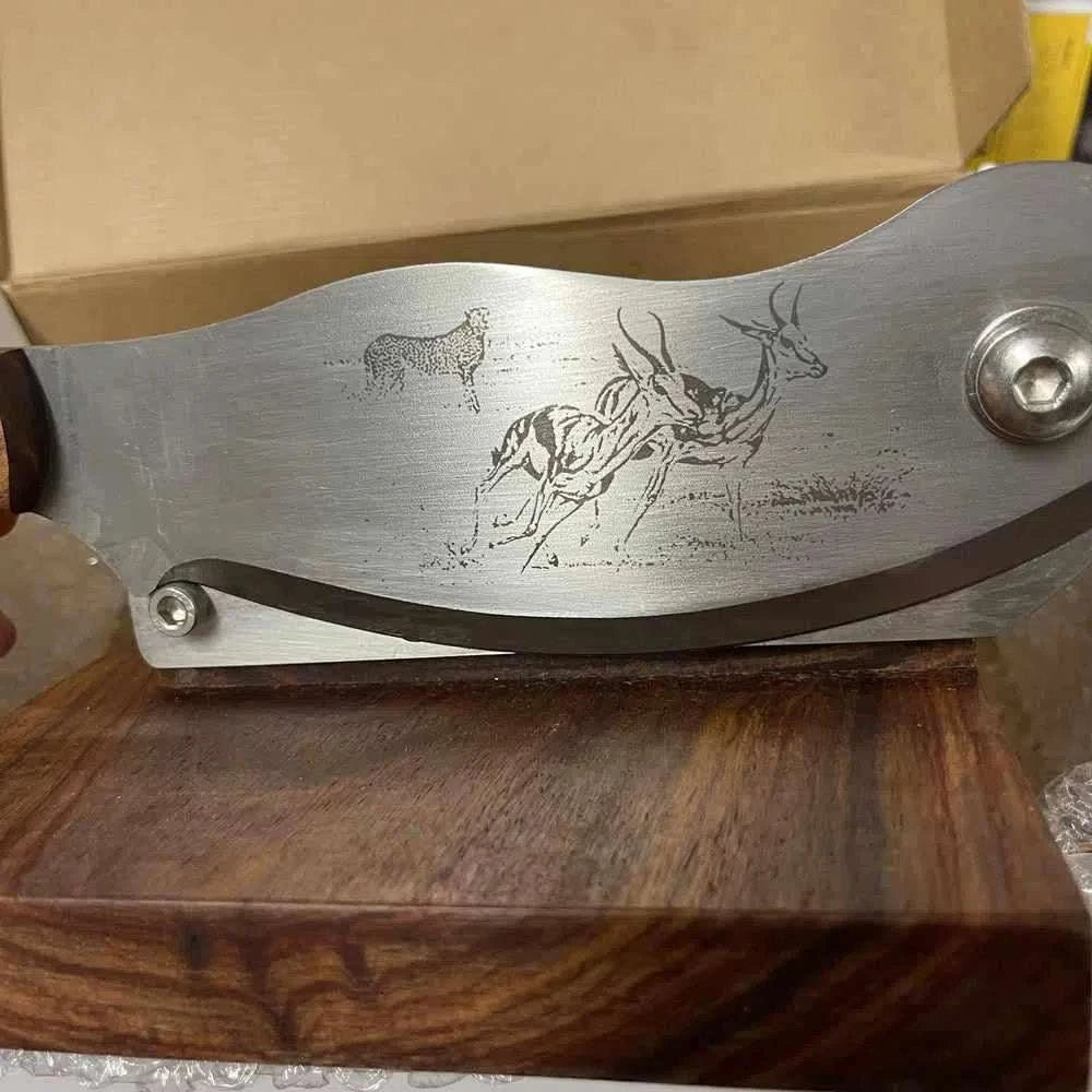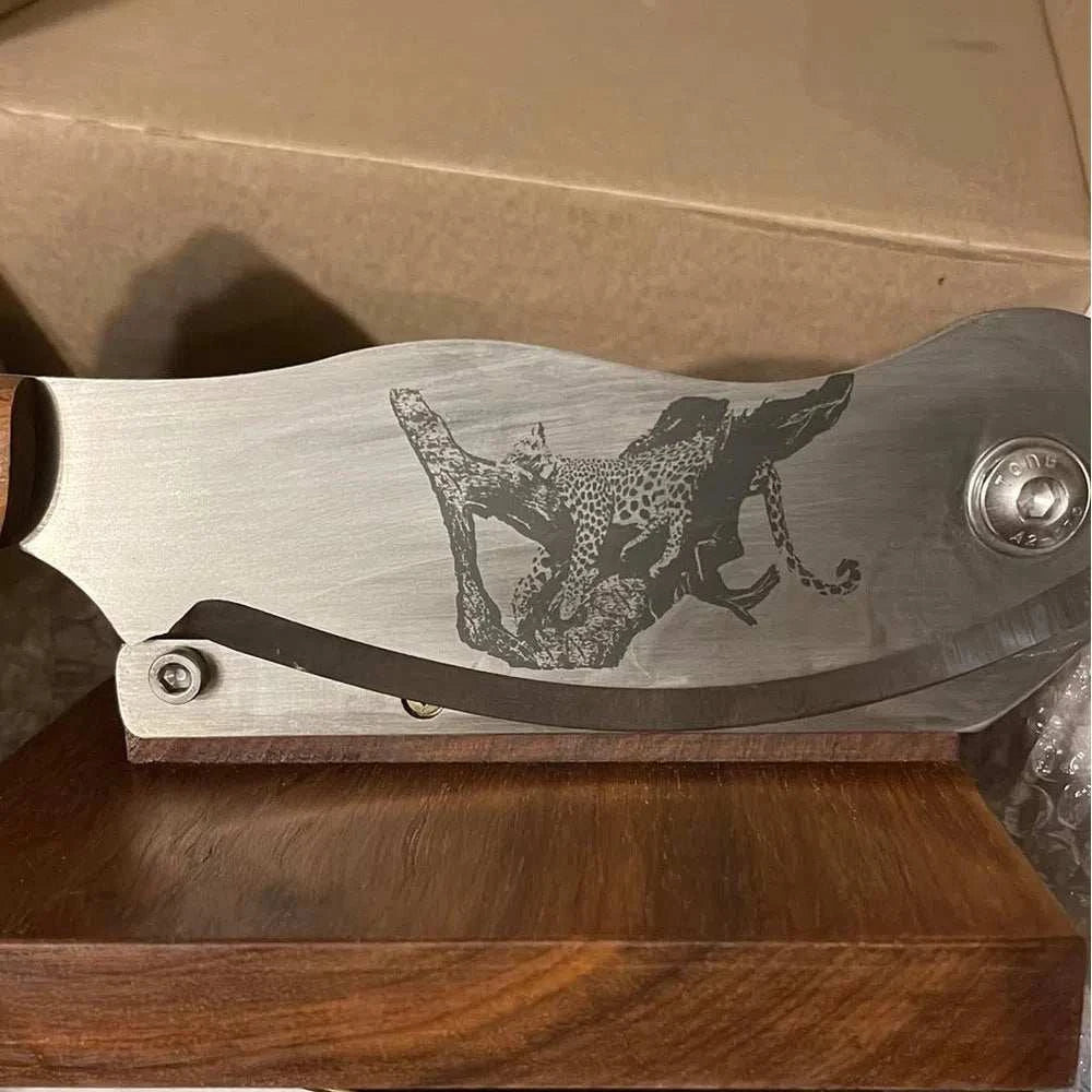 Description: Crafted with expertise in South Africa, the Blacksmith Biltong Cutter is a must-have tool for any biltong enthusiast. Handcrafted with solid Kiaat woodwork, this slicer offers precision and efficiency in slicing and cutting biltong to perfection. Whether you're preparing a snack for yourself or sharing with family and friends, this biltong cutter ensures a seamless experience. It also makes for an excellent gift for loved ones who appreciate quality craftsmanship and authentic South African flavors.
