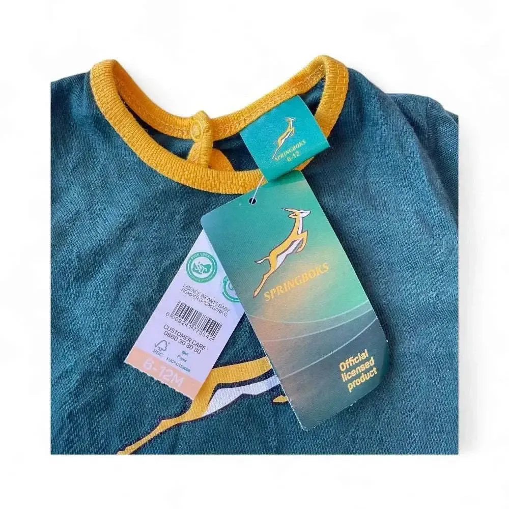 Perfect for match days, photos, or gifting to future rugby stars, this babygrow is both comfortable and stylish, made to let your baby support the Bokke from the very beginning.