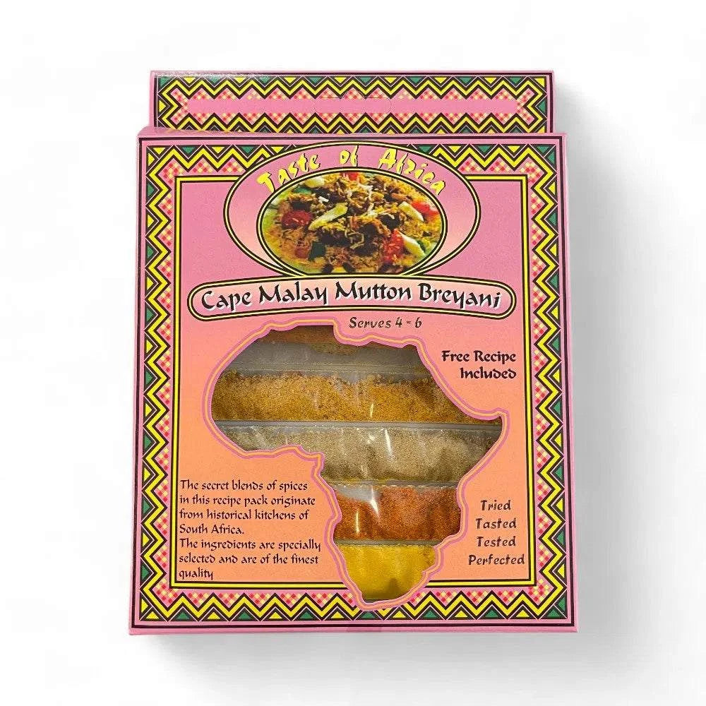 Enjoy the rich and fragrant flavors of South Africa with Taste of Africa Cape Malay Mutton Breyani spice mix. Perfect for family gatherings or special occasions, this spice blend ensures an authentic and delightful culinary experience. Order now from Something From Home.
